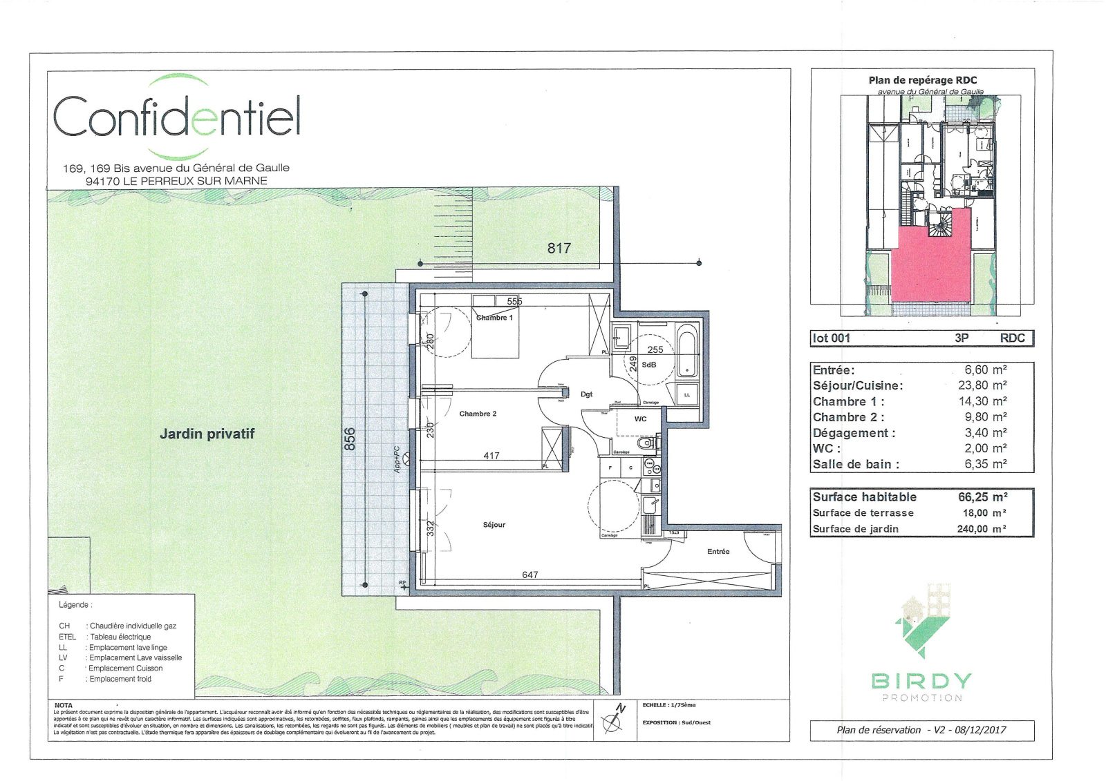 Le Perreux sur marne, au 169 Avenue du Général de Gaulle Appartement de 3 pièces plus place de parking