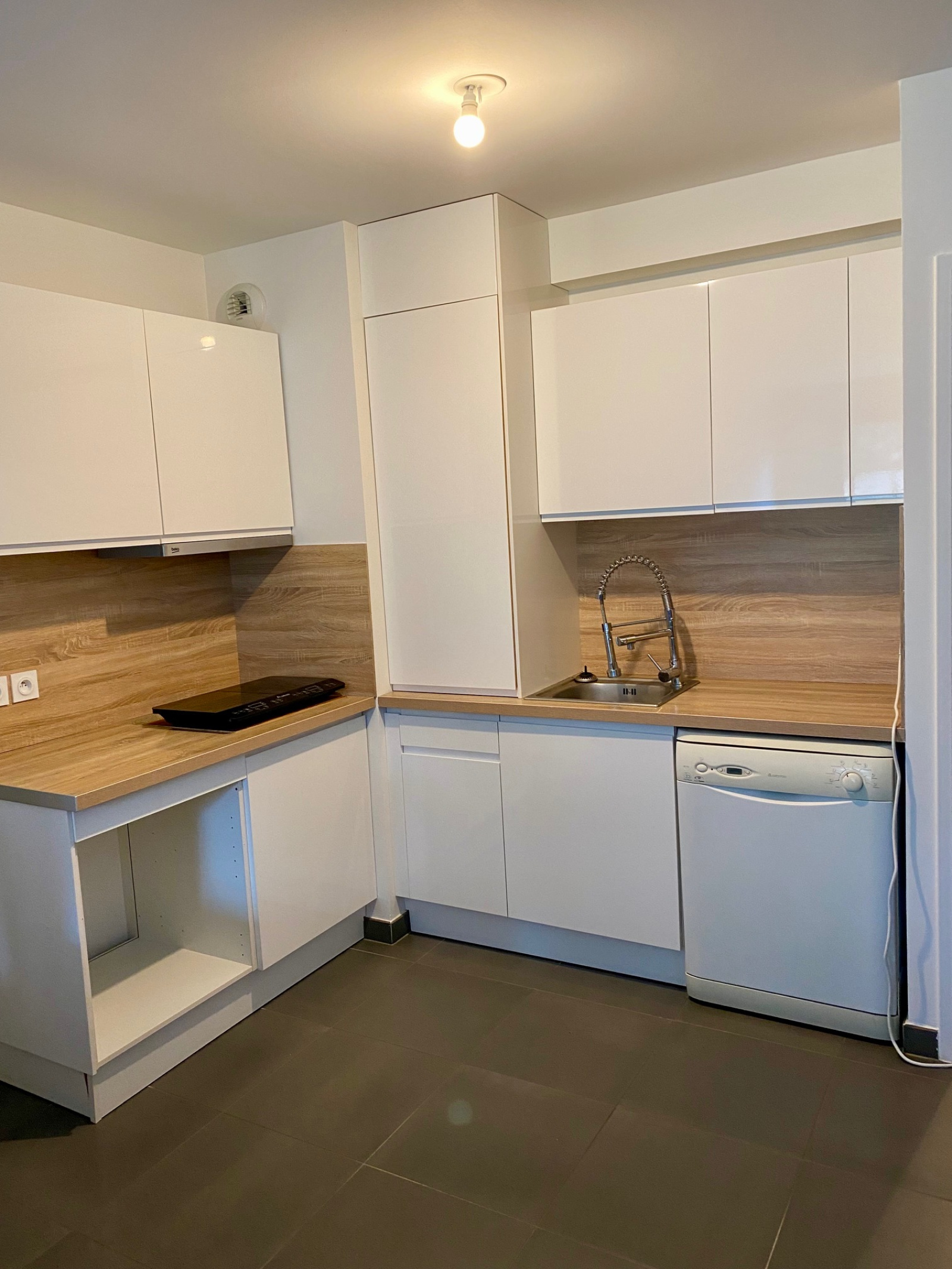 cet appartement se compose d'une entrée avec placard, d'un sejour avec cuisine ouverte aménagée, de deux chambres, d'une Salle d'eau, d'un WC.