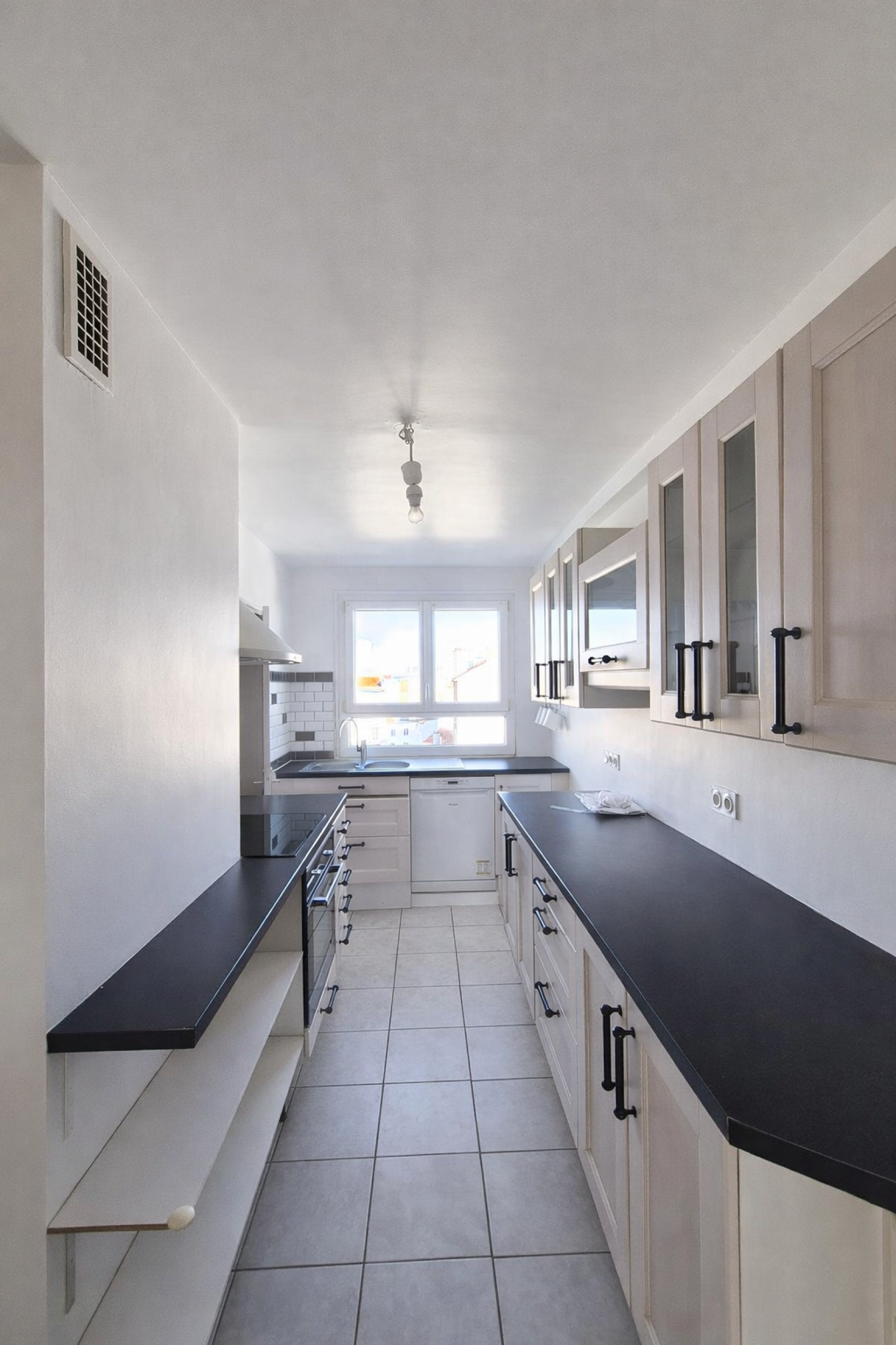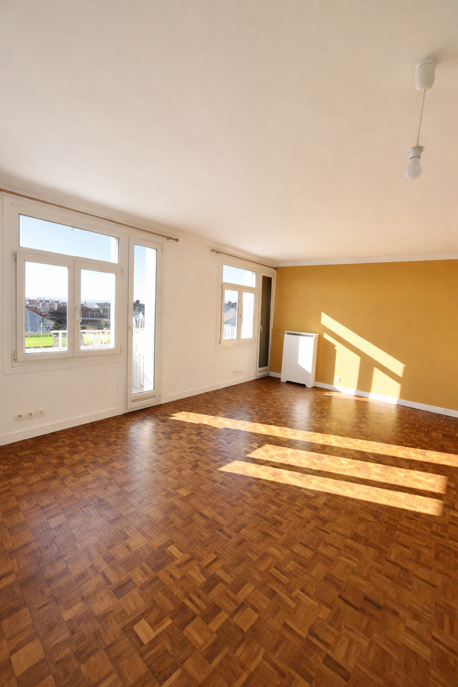 un Appartement comprenant : entrée avec placard, cuisine et cellier, double séjour, 2 chambres, salle d'eau, dégagement, toilettes séparées et 3 balcons.