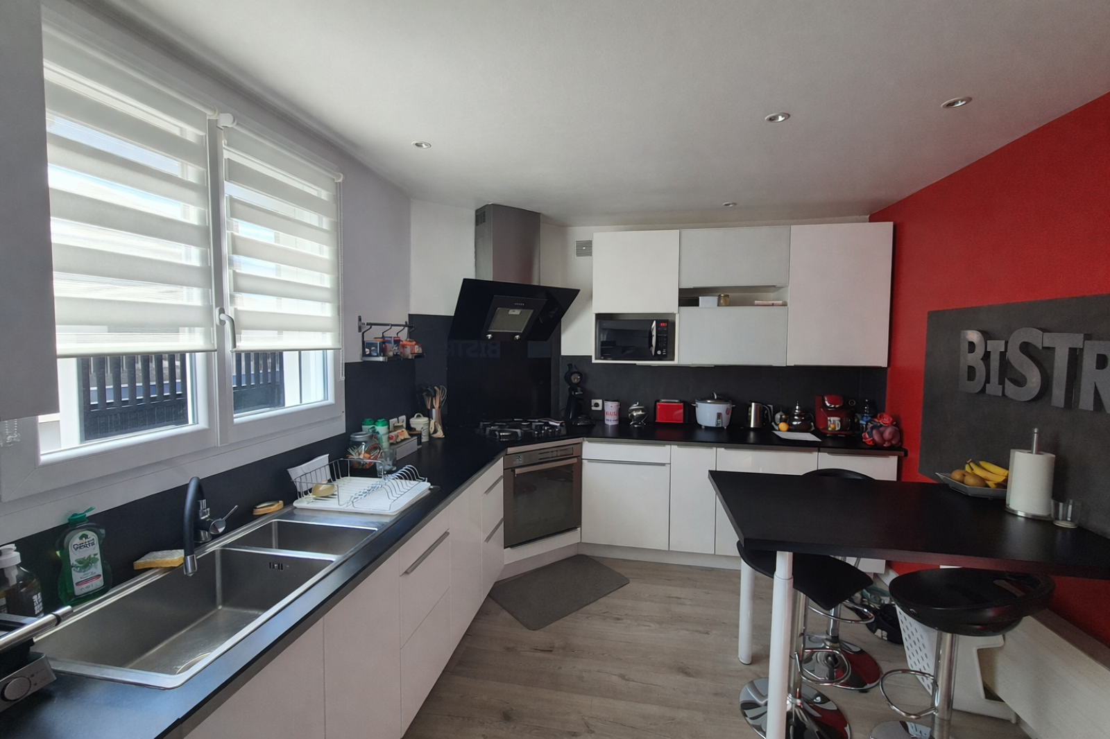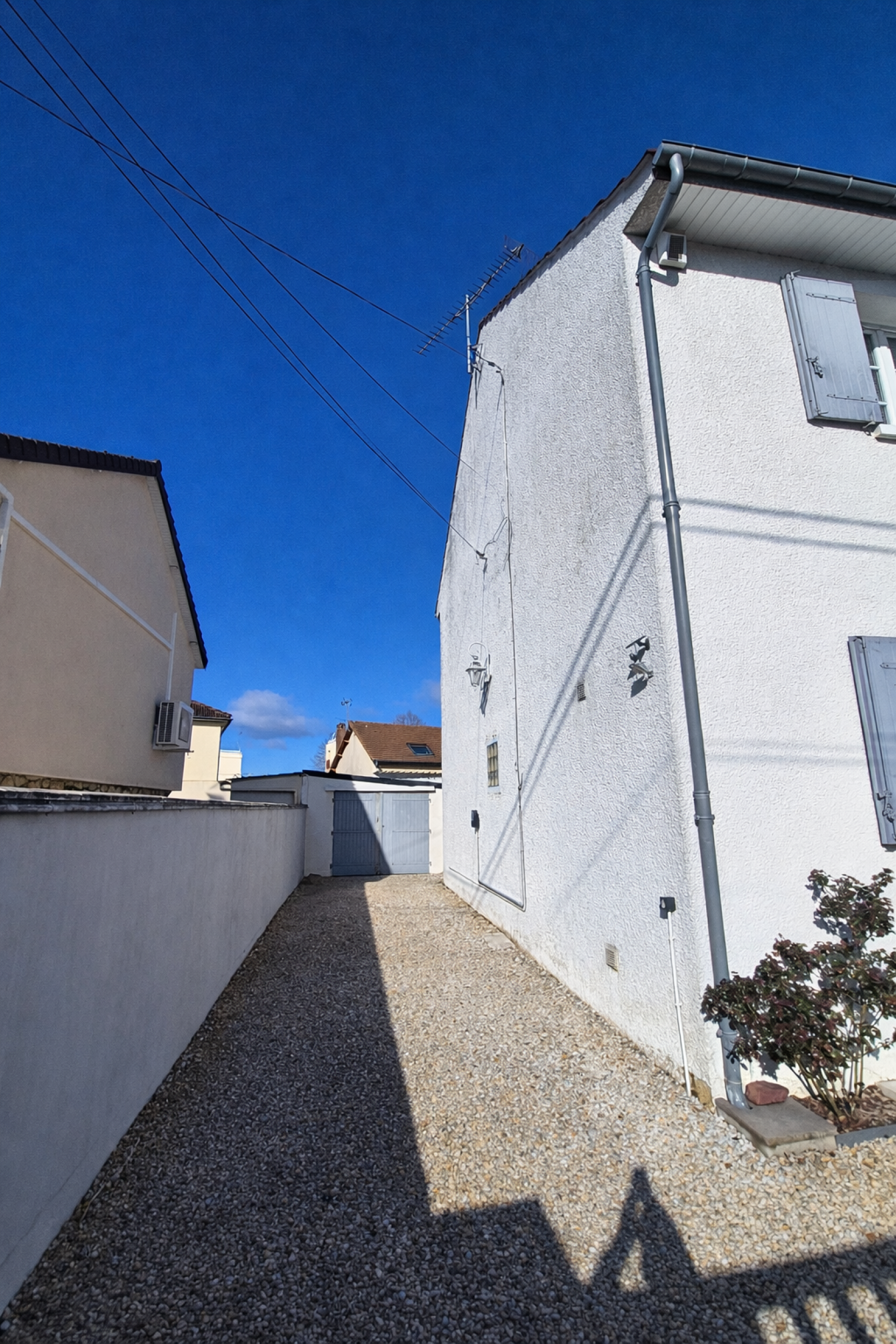 RDC : hall d’entrée, cuisine équipée, grand séjour triple de 50 m² avec cheminée, WC.Étage : 4 chambres avec placards dont une avec dressing, grande salle de bain (baignoire + douche), WC séparé. Possibilité de créer une seconde salle d’eau.Combles aménageables.Extérieur : jardin, terrasse, garage, 2 cabanons, abris bois et poubelles.À 5 min à pied des commerces, écoles et collège. Accès rapide RN3 et A104.