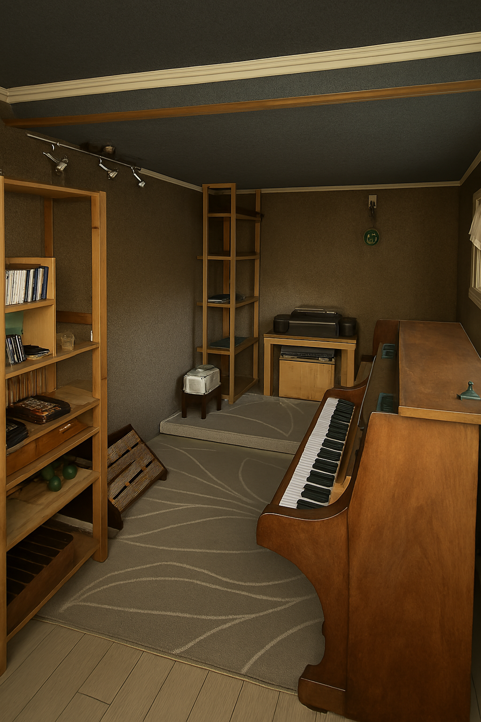 Les extérieurs incluent aussi une pièce insonorisée, un garage et un atelier, idéaux pour le bricolage et le rangement.